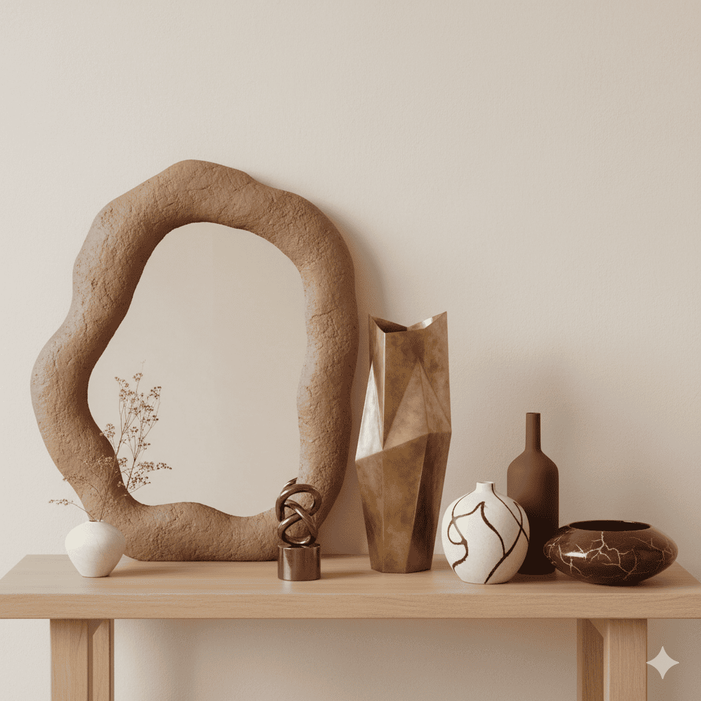 Piezas naturales, materiales nobles y artesanía contemporánea.