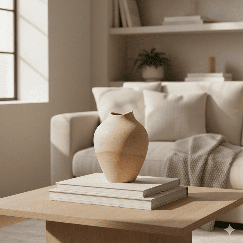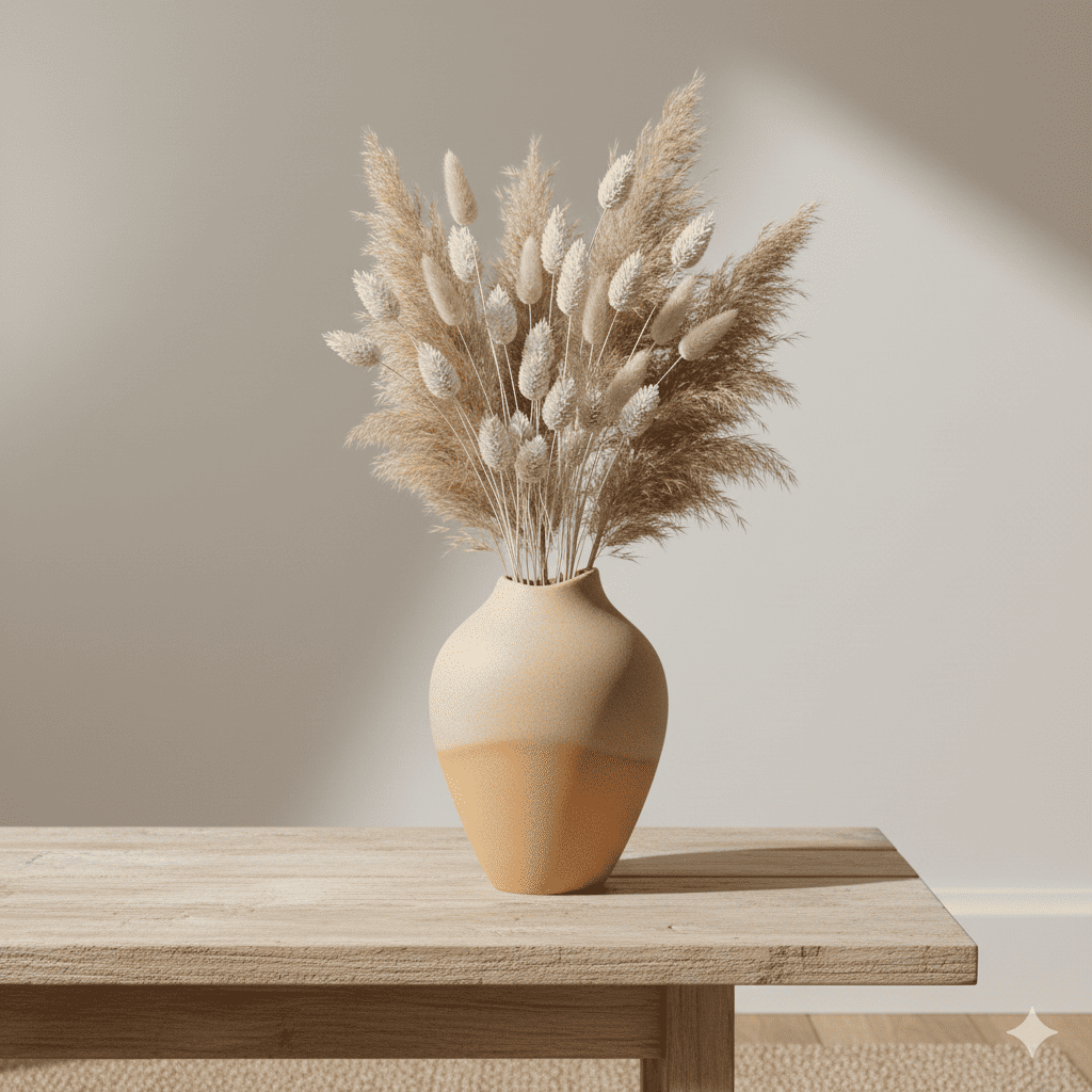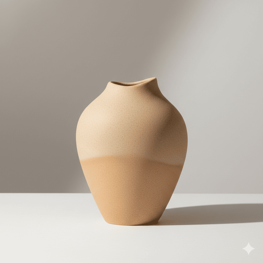 Jarrón cerámico artesanal en tonos arena, perfecto para flores secas y ramos minimalistas.