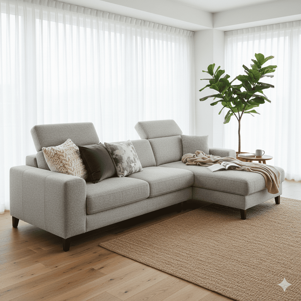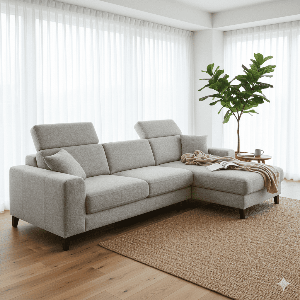 “Bruma” combina diseño elegante y máximo confort. Su chaise longue integrada ofrece un espacio relajante para leer, descansar o desconectar. Incluye reposacabezas ajustables y un tapizado antimanchas de última generación, pensado para el ritmo del día a día. Su estructura de madera maciza proporciona durabilidad y estabilidad, convirtiéndolo en un imprescindible para el hogar.